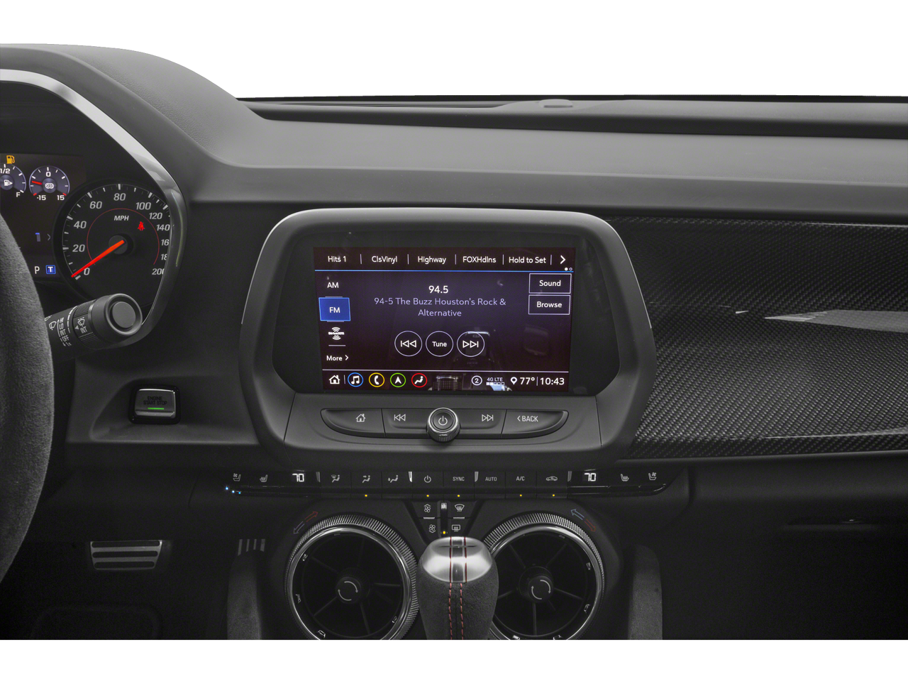 - Head-Up Display with color digital readouts for vehicle speed, selected gear, G-Force, audio system information, high-beam indicator, compass, outside air temperature, tachometer, vehicle messages, Turn-by-Turn information and phone information